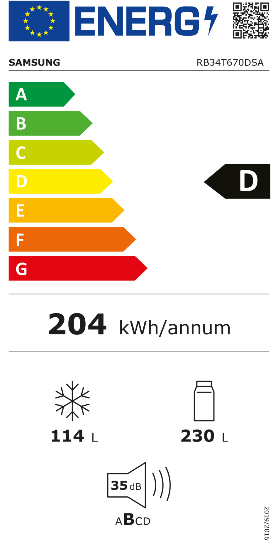 Het apparaat is elektronisch te bedienen en er is 1 koelcircuit aanwezig. Het apparaat werkt verder met een compressor-koelsysteem. Reguliere compressors gaan alleen aan en uit. De digitale Inverter Compressor van deze koelkast past automatisch zijn snelheid aan en koelt op 7 niveaus. Dit alles maakt de Samsung RB34T670DS koelkast zeer elegant en zeer stil, met een geluidsniveau van slechts 35 decibel. Daarnaast biedt Samsung maar liefst 20 jaar garantie aan op de compressor. *van toepassing op producten verkocht vanaf juli 2022Technische eigenschappen | |